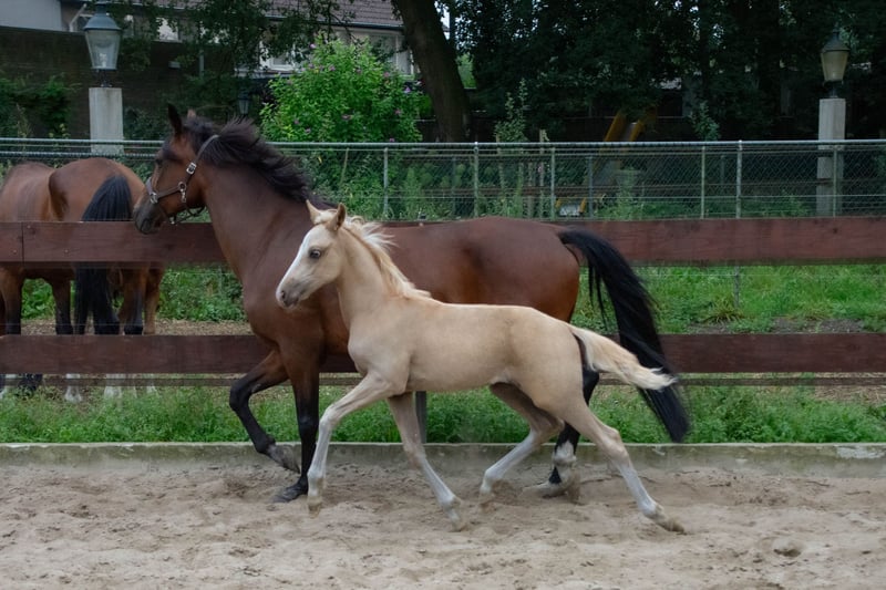 Wingman is a 1,5 years old NRPS stallion and is expected to grow into a medium-sized D-pony around the 1.43m. He has a very good pedigree: Winston’s Lisandro x Voltreffer x Highlight. His full pedigree can also be found here: https://nrps.nl/database/528008202400197-wingman-van-de-teugenaar Wingman's sire is the approved cremello stallion Winston’s Lisandro. He’s just been gelded and is being prepared for higher-level competitions; see the last (jumping) photos. Winston’s Lisandro's sire, Leuns Veld’s Winston JR, performed internationally under different riders and is currently very successful at the highest level in Poland. He first competed successfully in the Netherlands at Z-level. He has already won many victories, including selection competitions, district championships, regional championships, and Hippiade Champion! His sire, Leun Veld's Winston, competes at Z2 level in dressage, and his sire, Bodo, is currently based in Sweden. He successfully competed at Z2 level and became Dutch Champion for Young Dressage Ponies, among other titles. His dam, Leun Veld's Heidi (keur, preferent), became Benelux champion, four times national champion, and nine times regional champion. At four years old, she achieved the IBOP AA with 93 points and competed at Z level in sport. His grandmother, Molenhof's Ilonka (keur, preferent), became national champion, national reserve champion, and four times regional champion. Furthermore, there's the mare Julia, who competes at Z1 level in dressage and L level in jumping. Her sire, Le Matsjo, competed at Z2 level in dressage and Z level in jumping. Wingman's damline includes the ponies Voltreffer, who competed at the highest dressage level, Highlight, who competed at Z level in dressage and Z level in jumping, and Fabien van de Teugenaar, who competed at M level in dressage and Z level in jumping. And we could go on and on about all the successful ponies in this bloodline. We can safely say that Wingman has a fantastic pedigree! Wingman also earned a first premium at the regional NRPS foal inspection last year. He was also invited to the National Championship, but unfortunately, we were on vacation at the time, so we couldn't participate. Wingman has no (stable) vices! We also have photos of him as a foal. The photos of the brown pony are of his dam, the photo’s of the jumping brown pony is the grandmother and the photos of the cremello pony are of his sire. € 3500