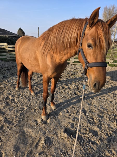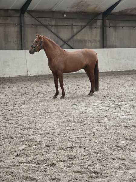 Wegens prive omstandigheden ben ik met veel pijn in mijn hart opzoek naar een super huisje voor mijn bijna 4 jarige spaanse hengst, met mooie ouders, gehele geschiedenis bekent vanaf veulen tot nu, ook foto's hiervan aanwezig. Ongeveer 156 hoog. Super mooie gouden Vos kleur. In orde met zijn entingen en ontwormingen. Hij is nog niet zadelmak maar kent grondwerk, longeren ook met een longeersingeltje en heeft al wel wat gezien. Maar doordat ik hem graag de tijd wilde geven om hem verder te laten groeien en ontwikkelen is hij dus nog niet zadelmak en ik wil dit ook nu niet voor de verkoop overhaast gaan doen, ik zoek iemand die dus in zijn tempo lekker met hem aan de slag gaat. Hij is in omgang echt een mega lief paard met respect voor de mens, hij weet wel dat hij hengst is maar gedraagt zich echt braaf en laat zich makkelijk corrigeren. Staat bij merries op stal en kan in de bak longeren als er een merrie is. Een super goed en blijvend huisje is voor heel erg belangrijk. Staat in Zuid-Holland, Nederland. Vraagprijs 5750 euro inclusief wat toebehoren zoals een zweetdeken, halsters, horseware deken met onderdekens en nog wat meer wat ik voor hem heb. Mocht je nog meer willen weten of serieuze interesse hebben stuur me gerust een berichtje. GEEN HANDELAREN.