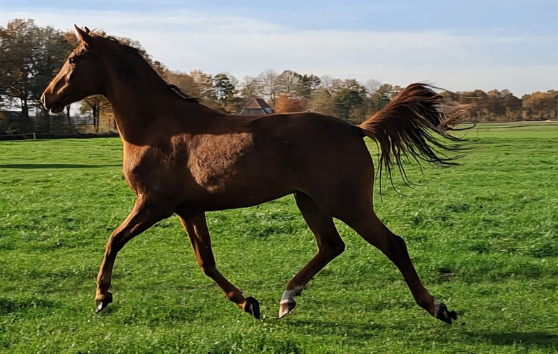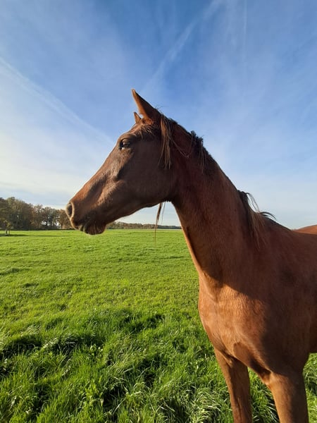 Aansprekende merrie, met goede gangen! En mooie bloedlijnen. Nog geheel naar eigen hand te zetten, komt zo uit het land. Zal naar verwachting een goed sportpaard worden, onder de ervaren ruiter.