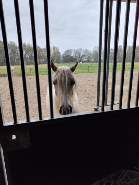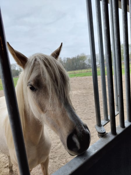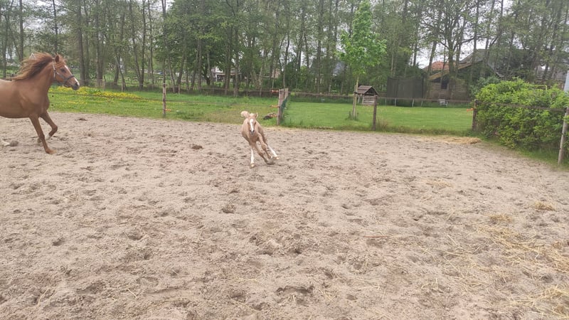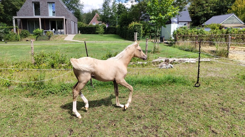 Nieuwsgierige, zelfstandige en dappere merrie met een goede balans en verende gangen. Houdt van poetsen, aandacht en werkt graag. Verwachte stokmaat 150 - 155. E-pony. Bij mij geboren en heel gezond. Ik fok hobbymatig, daarom nu beschikbaar voor een fijn thuis. Wordt begin mei 3 jaar. 80% arabisch bloed. Predikaatrijke moederlijn met o.a. de top ox hengsten Krimh, Gomel en Baccarat.