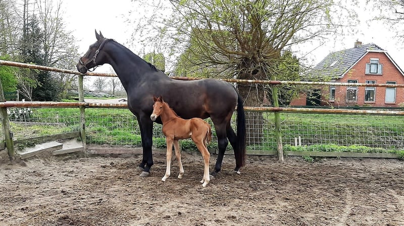 Isarah van Drakensteyn, alias Saar, is van april 2022 en is nu goed zadelmak. Een zeer lief mensgericht paard dat ook heel sociaal is met andere paarden en probleemloos in een (gemengde) kudde loopt. Ze heeft een heel fijn karakter. Ze heeft een slanke bouw en meet 1,65/1.66 m maar is nog erg jeugdig waardoor ze zeker nog wel wat doorgroeit… Amazone op de film is 1,78 m. Saar is zeer correct gebouwd met rechte benen en goede voeten. Zij is in juli 2025 röntgenologisch goedgekeurd zonder bemerkingen incl. hals en rug. Saar heeft heel goede rontgenfoto's! Ook is zij, voordat ze beleerd werd, bij de tandarts zijn geweest. Haar vader is de prachtige hengst Vainqueur (Vivaldi x Rubioso) die in Duitsland succesvol GP loopt onder Dorothee Schneider. Haar moeder is een ster prestatie merrie van de GP hengst Sorento (Sandro Hit x Donnerhall) die nu 19 jaar is. Saar was haar eerste veulen (4e generatie eigen fok) en vorig jaar heeft ze een merrieveulen van de hengst Red Viper gekregen. Deze merrie heeft ook nog altijd prachtige droge benen en heel gezond.... Daarachter zit de GP hengst Rubiquil (Rubinstein x Roemer), het paard waar Laurens van Lieren zijn carrière mee is begonnen. Saar zou bijzonder geschikt zijn voor een amazone die de overstap van de pony's naar de paarden wil maken, maar ze is niet geschikt voor een onervaren of onzekere ruiter. Ze is vlug en sensibel maar op een goede manier, nooit bokken of steigeren. Ze staat keurig stil bij opstappen. Ze zou echter ook geschikt zijn voor de fokkerij. Ze wordt verkocht onder voorbehoud van gunning en valt in de iets hogere prijsklasse. Wil je eens kennismaken met deze mooie oranje dame? Dat kan, stuur mij een appje (ivm werk niet bellen). Saar staat momenteel in het midden van het land, komt begin mei weer terug naar huis (net boven Amsterdam) Graag alleen appen ivm werk 06-11343740
