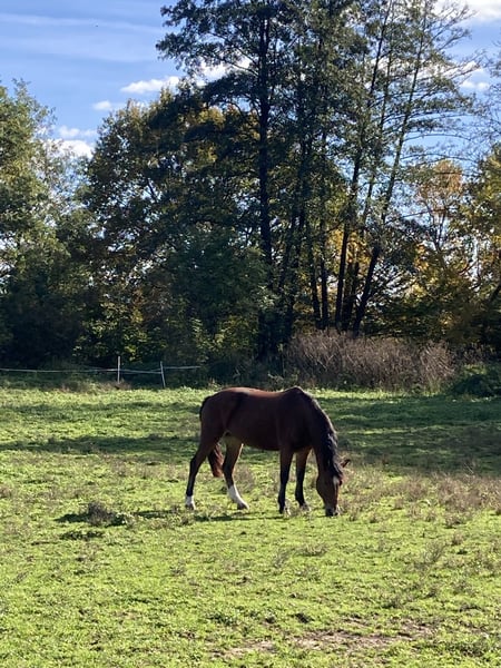 Zum Verkauf steht eine 8-jährige Endmaßponystute, ca. 145cm groß und absolut nervenstark und unerschrocken. Sie besticht durch ihren tollen und sehr braven Charakter sowohl im Umgang als auch unter dem Sattel. Auch im Gelände ist sie eine echte Lebensversicherung, jederzeit kontrollierbar, auch in der Gruppe und überhaupt nicht schreckhaft. Sie kennt Kinder, Hunde sowie sämtliche Maschinen und ist freundlich zu Artgenossen sowie schmiede- und verladefromm. Ein bombensicherer Allrounder für Dressur, Springen und Freizeit zum Sofort Losreiten und Spaß haben. Für weitere Infos oder Videos gerne melden.