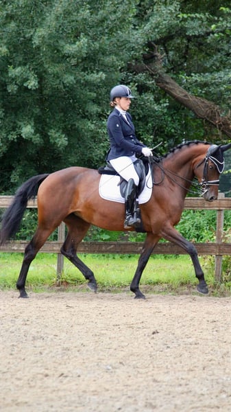 Te koop: Bo – Veelbelovende merrie met gouden karakter! Ben je op zoek naar een betrouwbare, werkwillige merrie met ervaring in de sport? Maak kennis met Bo, een 8-jarige prachtige merrie die alles in huis heeft om haar nieuwe ruiter/amazonde naar een hoger niveau te brengen! • Leeftijd: 8 jaar • Geslacht: Merrie • Stokmaat: 1.67 m • Afstamming: Bright’s Hero SB x Casimo • Niveau: ZZ-Licht geklasseerd • Karakter: Super braaf, nuchter en eerlijk • Rijdbaarheid: Zeer werkwillig en fijn aan de hulpen Bo is een paard met drie correcte en expressieve gangen, een goede instelling en een werklust die je zelden tegenkomt. Ze is nuchter in omgang, makkelijk op stal en op vreemd terrein. Of het nu gaat om een fijne training thuis, een wedstrijd of een buitenrit – Bo doet het met plezier en rust. Met haar afstamming en haar huidige niveau in de dressuursport, is Bo uitermate geschikt voor een ambitieuze ruiter, die een betrouwbaar en sportief maatje zoekt om verder mee te groeien. Pluspunten op een rij: • Klaar voor het hogere werk • Geen stalgebreken • Super makkelijk in de omgang en bij de hoefsmid/dierenarts • Vertrouwd op transport en op vreemd terrein • Röntgenologisch goedgekeurd Paard is te bezichtigen in Renswoude, Utrecht. Voor meer informatie of een bezichtiging, neem gerust en vrijblijvend contact op met: Aimée Weise +31646011494
