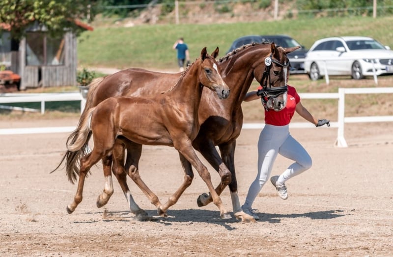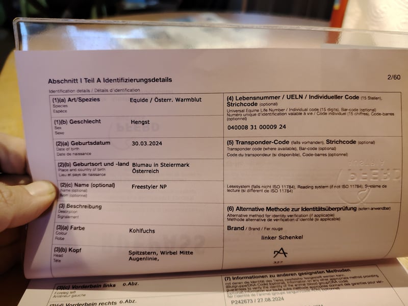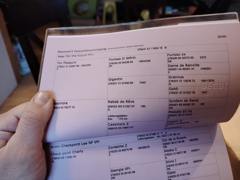 Hier steht ein toller 2 Jährige Hengst zum Verkauf. Die Mutterstute, eine Verbandsprämienstute Checkpoint's Lea von Campari H x Cadillac S ist selbst bis Kl. LM gesprungen und Vater For The Future (For the Pleasure x Nabab the Reve) ist aus dem Hause Tebbels. Mit der Höchstnote von 10,0 für sein Vermögen, 9,2 für Manier und Rittigkeit bestand For the Future seine Sportprüfung in Münster Handorf. Seinen 14 Tage Test in Adelheidsdorf absolvierte For the Future mit der springbetonten Endnote von 9,23. Für Charakter, Leistungsbereitschaft und Freispringen bekam er die Note 9,5 seine Rittigkeit wurde mit einer 9,0 benotet. Der 2 Jährige besticht durch seine Elastizität und er ist ein Blickfang der schöner nicht sein könnte. Ebenfalls sind seine Grundgangarten von hervorragender Qualität, von daher wünschen wir für ihn eine Zukunft im Sport. Sicherlich auch in der Vielseitigkeit. Beim Fohlenchampionat erreichte er eine Wertnote von 8,0. Geb. 30.4.2024