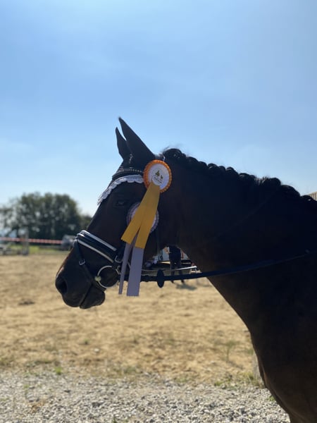Alykessa ist eine sehr liebe, motivierte junge Stute die sich seht gerne im Viereck präsentiert, aber man kann auch im Wald und Gelände richtig Spaß mit ihr haben. Bei Turnieren zeigte sie sich bis zur Dressur-Klasse LM siegreich und ist auch auswärts immer ein richtiger Verlass. Ebenso hat sie auch Erfahrung in der Working Equitation, worin sie auch bei Turnieren schon vorgestellt wurde. Alykessa wird schweren Herzens, aufgrund von Zeitmangel, verkauft und wir wünschen ihr einen tollen neuen Platz für sie - aus diesem Grund auch Platz vor Preis! Sie kennt verschiedenste Stallarten, Box mit Koppelgang, Offenstall,.. für sie alles kein Problem, sie passt sich sehr schnell an. Bei Bedarf, gegen Aufpreis, mit komplettem Zubehör abzugeben.