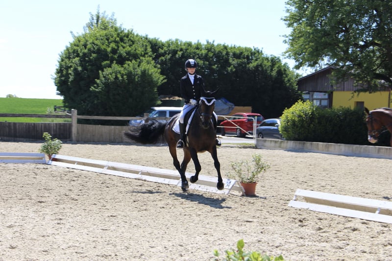 Alykessa ist eine sehr liebe 10-jährige ÖWB Stute mit Charakter, ca. 1,62m groß, welche hauptsächlich dressurmäßig gefördert wurde, aber auch regelmäßig im Wald und Gelände richtig Spaß hat. Bei Turnieren zeigte sie sich bis zur Dressur-Klasse LM siegreich und ist auswärts immer ein richtiger Verlass. Lief öfters auch bei Führzügelklassen mit. Ebenso hat sie auch Erfahrung in der Working Equitation. Ausritte alleine/in der Gruppe kennt sie und daran hat sie auch richtig Freude! Gesprungen wurde sie immer mal wieder als Abwechslung, mit aktiver Förderung ist dies sicher ausbaubar. Alykessa wird schweren Herzens, aufgrund von Zeitmangel, verkauft und wir wünschen ihr einen tollen neuen Platz für sie - aus diesem Grund auch Platz vor Preis! Sie kennt verschiedenste Stallarten; Box mit Koppelgang, Offenstall,.. für sie alles kein Problem, sie passt sich sehr schnell an. Kennt reine Stutenherden aber auch gemischte Gruppen. Zeltboxen oder Fixboxen sind kein Thema für sie, zb. bei Turnieren, Wanderritten,... Bei Bedarf, gegen Aufpreis, mit Zubehör abzugeben. Eine AKU ist vorhanden. Nähere Infos/Videos teilen wir natürlich gerne bei ernsthaftem Interesse! Seit 3-jährig als Reitbeteiligung und 5-jährig dann in unseren Besitz übergegangen. Vorbesitzer (welche sie gezogen haben) bis heute noch persönlich bekannt. Wir kennnen sie daher in- und auswendig.