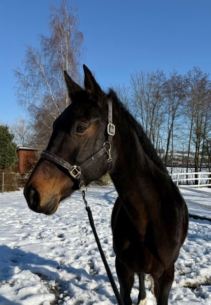 Aufgrund privater Umstände beenden wir unsere Zucht. „Esteva S“, ist eine 14-jährige Österreichische Warmblutstute die bei uns nur als Zuchtstute gehalten wurde. Esteva besticht durch ihre hervorragende Abstammung als Zuchtstute. Väterlicherseits stammt sie von „Don Juan de Hus“ ab. Mütterlich geht sie auf „Don Friedericus LB“ sowie auf „Grundstein II“ zurück. Esteva ist nicht geritten. Sie ist eine freundliche aber charakterstarke Stute, die jedoch eine ruhige und erfahrene Person an ihrer Seite benötigt. Ihren Fohlen vererbt sie ihre ausdrucksstarke Bewegung. Alle Fohlen von ihr sind super umgängliche und freundliche Pferde. Das letztjährige Hengstfohlen, kann im Stall besichtigt werden. Sie ist gesund, ist jedoch auf der Hinterhand weich gefesselt. Dies schränkt sie im Alltag nicht ein. Esteva lebt momentan im Offenstall, kennt auch Boxenhaltung und freut sich über jede liebevolle Zuwendung. Wir wünschen uns für sie ein wunderschönes Zuhause in Pferdegemeinschaft und einer Bezugsperson. Preis ist VHB.