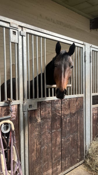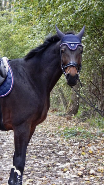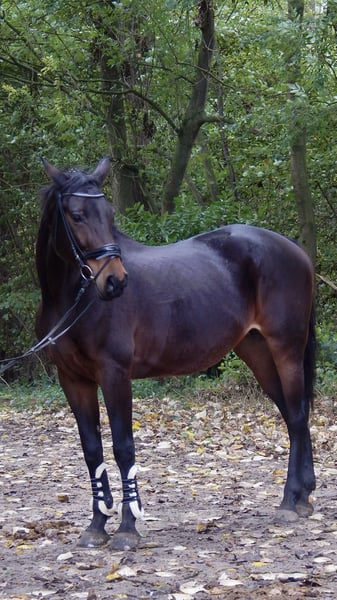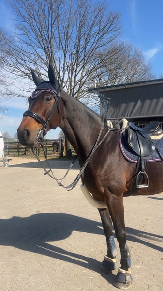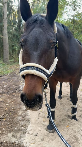 Available is my 13-year-old (*2012), approximately 16.1 hh Austrian Warmblood mare, Ri-H. Ri is very affectionate and enjoys cuddling. She always wants to nuzzle before bridling. She aims to please her handler and always does her best. She is fearless and well-acquainted with various terrains, including walking/jogging, so I can also imagine her as a lead horse for hacking out. She also handles lunging well. She knows double lunging, relaxed long-reining with a halter, and lunging in side reins. During winter, she can become a bit spicy, but she is never mean! She is familiar with exercises such as clicker/trick training, free jumping, and groundwork. She is regularly dewormed and vaccinated against tetanus and influenza until mid-2025. She wears shoes on the front feet. She only goes into the trailer with her eyes closed, but she manages it well. It’s not fear but stubbornness. She remains calm inside the trailer at all times. Due to a diagnosis of osteoarthritis in her cervical vertebrae, she is no longer suitable for riding or only conditionally (walk-only rides at her own risk and under a contractual agreement), as the risk of falling is too high. Various treatments have been attempted, such as injections, but these have not been effective. The osteoarthritis causes her to stumble frequently or shift her weight onto her front legs. She also shows slight irregularities in her gait, but these are not serious. She needs enough movement, as she has “fluid retention” in her hind legs, which is not noticeable during activity and does not limit her in any way. She also turns her hind legs outward when moving, but this does not restrict her either. None of her conditions cause her pain or incur ongoing veterinary costs. She has never shown any health issues besides minor scrapes or bruises. Reports and X-rays are available. Due to these issues, I cannot provide her with the long-term care she needs. Ideally, she would be kept on a pasture or in an open stable as a companion or in a box with plenty of turnout, social contact, and movement. She is accustomed to 24/7 outdoor turnout and gets along well with other horses. She prefers to stay close to me, but if a suitable new home is found, I would consider a longer distance. She could also be used as a broodmare due to her jumping style and her lineage from Clinton II. She has previously been a broodmare and has foals. She is registered in the main studbook in Austria. I will be offering her from April onwards, at full cost coverage. Details can be discussed personally. No urgent placement. A visitation right and a protection contract are mandatory. If everything goes well long-term, a sale or transfer of ownership may be considered. She is located in 41564 Kaarst. Please contact mainly via message.