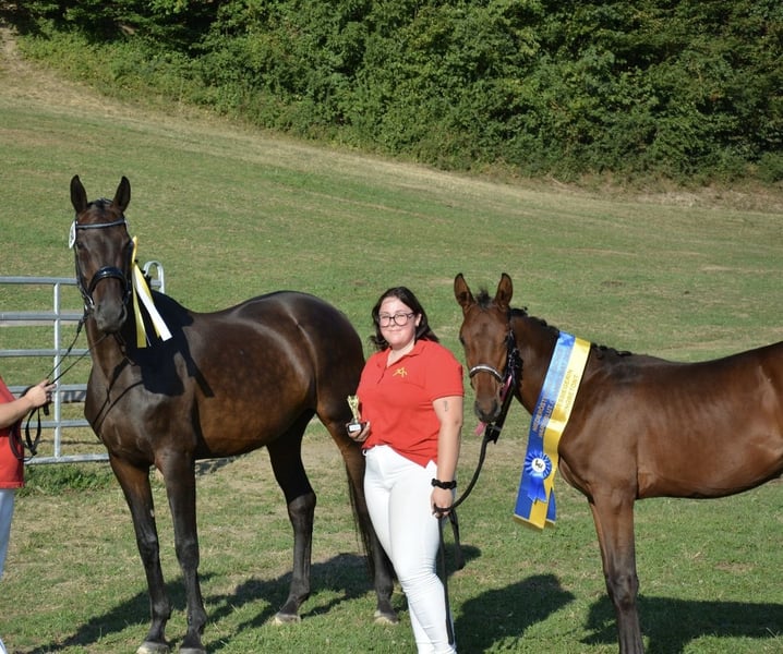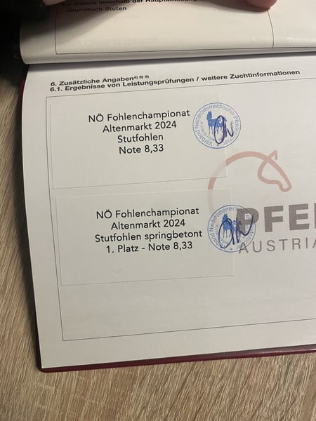 Zum verkauf steht eine vielversprechende 1,5- jährige österreichische Warmblut Stute Mit einem geschätzten Endstockmaß von ca. 1,70 m. Calinera beeindruckt durch ihr ausdrucksstarkes Exterieur, ihr kräftiges Fundament und vor allem durch ihren charakterstarken, selbstbewussten Auftritt-eine junge Dame die weiß, wer sie ist. Sie kennt das Fohlen ABC, lässt sich brav führen und zeigt sich lernwillig. Calinera sicherte sich 2024 in Thenneberg den 1.Plaz bei den Springbetonten Stutfohlen mit einer 8,33 Note Sie hat die besten Voraussetzungen für den Sport oder als qualitätsvoller Freizeitpartner.Mit ihrer Präsenz und ihrem Charakter wächst sie zu einem echten Blickfang heran. Ein Pferd für erfahrene Hände, die junge Talente mit Persönlichkeit zu schätzen wissen