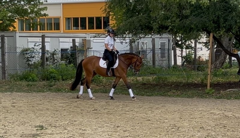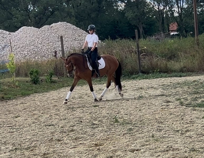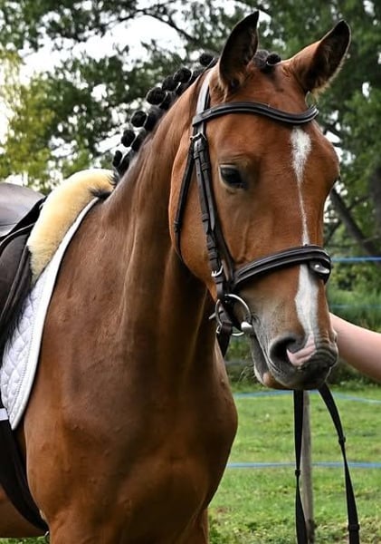 This 3-year-old mare (Coffein (Colman- Carthago Z) × Cocosinni ( Coreggio× Landadel) ) combines exceptional bloodlines with a kind and cooperative temperament. She stands well for the farrier, loads and travels calmly, and gets along well with other horses and animals. She works confidently on the lunge in all three gaits and performs well in basic groundwork. Recently started under saddle, she is proving to be exceptionally rideable and composed. Despite her young age, she is already showing great potential under saddle with an impressive attitude and natural ability. She is very kind towards people and children, enjoys attention, and is curious about new experiences. Fully vaccinated, regularly dewormed, and has up-to-date bloodwork within the last year. Only for sale to a good home