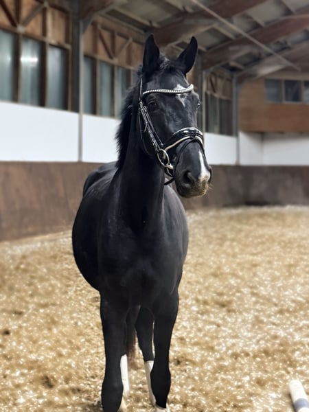 Unsere selbstgezogene 3-jährige Stute von unserem Hengst Gogogachetto Chippendale (v. Millennium), der im vergangenen Jahr erfolgreich an der Europameisterschaft teilnahm, aus einer Diamond Deluxe-Mutter, vereint moderne Sportlichkeit mit ausgezeichnetem Temperament. Die Stute ist bereits gut geritten und zeigt sich dabei außergewöhnlich brav, rittig und stets gelassen. Sie verfügt über eine sehr gute Grundausbildung, lässt sich sicher in allen drei Grundgangarten arbeiten und überzeugt durch ihre Lernbereitschaft sowie ihre konstante Arbeitseinstellung. Auch unter dem Sattel präsentiert sie sich unkompliziert, ausgeglichen und jederzeit kontrollierbar – ein echtes Verlasspferd für ihr Alter. Im täglichen Umgang ist sie super lieb, äußerst menschenbezogen und absolut zuverlässig. Sie kennt Tierarzt und Schmied, lässt sich problemlos verladen und zeigt sich in jeder Situation nervenstark und kooperativ. Eine junge Nachwuchsstute mit viel Qualität und großem Zukunftspotenzial – ideal für Reiter*innen, die sich ein talentiertes, bereits gut gerittenes und besonders braves Pferd für den Sport aufbauen möchten.