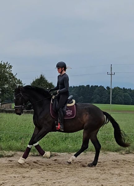 For sale is the 3-year-old Warmblood mare Ulana from an excellent pedigree: father De Niro Gold, mother the Elite mare Uniqua by Weltrubin – Upan la Jarthe. Ulana impresses with her exceptionally good-natured and people-oriented character. She is already under saddle, always showing motivation, reliability, and ease. In the field, she demonstrates particular nerve strength and courage, making her a dependable partner even in less straightforward situations. With her outstanding lineage, pleasant character, and already demonstrated rideability, Ulana offers the best conditions as a young horse for ambitious riders seeking a talented and uncomplicated horse for sport and leisure.