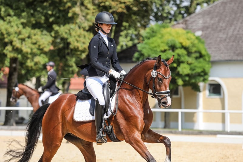 Stella wurde vierjährig angeritten und überzeugt seitdem durch ihre hervorragende Rittigkeit, Leistungsbereitschaft und ihren ausgeglichenen Charakter. Sie ist das ideale Pferd für Reiter, die einen zuverlässigen Partner mit Perspektive im gehobenen Dressursport suchen. Am Turnier präsentiert sie sich stets zuverlässig und punktet mit drei überdurchschnittlichen Grundgangarten. Im vergangenen Jahr konnte sie sich mehrfach in Dressurpferdeprüfungen der Klasse A platzieren und erhielt Teilnoten bis zu 9,0. Als besonderes Highlight erreichte sie beim AWÖ-Bundeschampionat das Finale der 4- bis 5-jähringen Dressurpferde. Aktuell wird sie behutsam und spielerisch auf die Anforderungen der Klasse L vorbereitet. Erfolge 2025: - OÖ Reitpferdechampionat Endnote 8,2; 4. Platz (Trab Tageshöchstnote 9,0) - AWÖ-Bundeschampionat: Reitpferdechampionat 4-jährig: Endnote 7,9 - 13. Platz Dressurpferdechampionat 4 & 5 jährig Kl. A (Finale): Endnote: 7,72 - 11. Platz