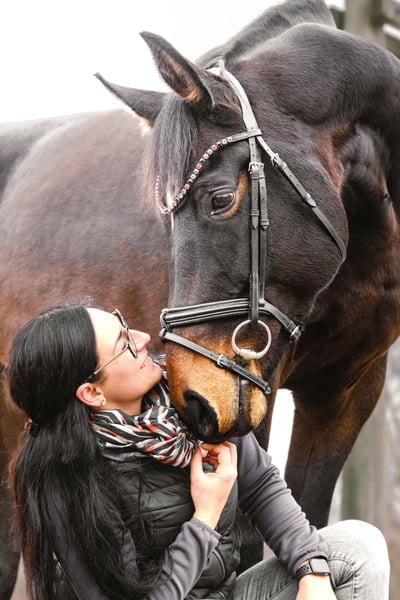 Wanda Geboren: 2019 Abstammung: Fürst Romancier x Likoto xx Farbe: Schwarzbraun Stockmaß: ca. 174 cm Wanda ist eine super schicke, großrahmige Stute mit viel Ausdruck und einem sehr freundlichen, menschenbezogenen Wesen. Ich habe Wanda im Alter von 1,5 Jahren direkt von der Züchterin gekauft. Bei mir dann im Offenstall aufgewachsen. Kennt auch Box mit Koppel. Wanda wurde 2023/2024 angeritten - sehr bequem zu sitzen und leicht in der Hand. Im April 2025 hat sie ein sehr schickes Stutfohlen von Vitalis zur Welt gebracht – die Geburt verlief unkompliziert, und Wanda ist eine tolle Mutterstute, die ihr Fohlen jederzeit gerne herzeigt. Ihre Nachzucht überzeugt bereits jetzt mit viel Typ und Qualität. Das Fohlen wurde ende November 2025 abgesetzt und die Stute befindet sich wieder in der Arbeit unter dem Sattel. Für Mai 2026 ist sie tragend von Vivamor (Viva Gold x Sir Donnerhall) – eine vielversprechende Anpaarung für Sport und Zucht. https://damildressage.com/stallions/C2JSsDbh6hUrCErvKWfS Ich wünsche mir für diese tolle Stute einen erstklassigen Platz, an dem ihre wertvolle Linie geschätzt und gefördert wird. Röntgenbilder vom Kauf sind vorhanden. Die Stute kann gerne besichtigt werden Standort OÖ Bezirk Rohrbach 0043 6608456422