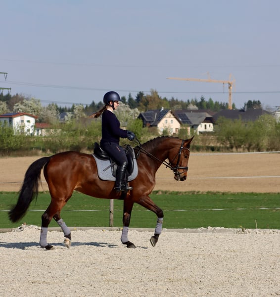 Verkaufe unsere selbstgezogene 8-jährige AWÖ Stute Gavina Sie lässt sich in der Dressur schön reiten und super leicht sitzen. Sie ist eine sehr motivierte Stute mit einem Stockmaß von ca. 1,62m und ist am 20.07.2018 geboren. Sie ist lieb im Umgang jedoch ist sie kein reines Anfängerpferd da sie schon einen starken Charakter hat. Wir haben sie selber aus unserer Stute gezogen und sie ist seit Geburt auf bei uns und wurde von uns selber 4 jährig schonend angeritten und ausgebildet. Leider findet sie aber keinen Spaß am Springen und hat ihre Freude an der Dressurarbeit und ich am Springen. Sie war erst ein Spring- und Dressurturnier da ich zwei Kinder bekommen habe jedoch hat sie schon mehrere Auswärtstrainings gemeistert. Am Dressurturnier hat sie eine Dressurpferdeprüfung der Klasse A gewonnen. Sie ist regelmäßig beim Hufschmied und ist aktuell mit 4 Hufeisen. Geimpft ist sie Grippe und Tetanus. Herpes müsste aufgefrischt werden. Anfragen über WhatsApp oder telefonisch 06644646341