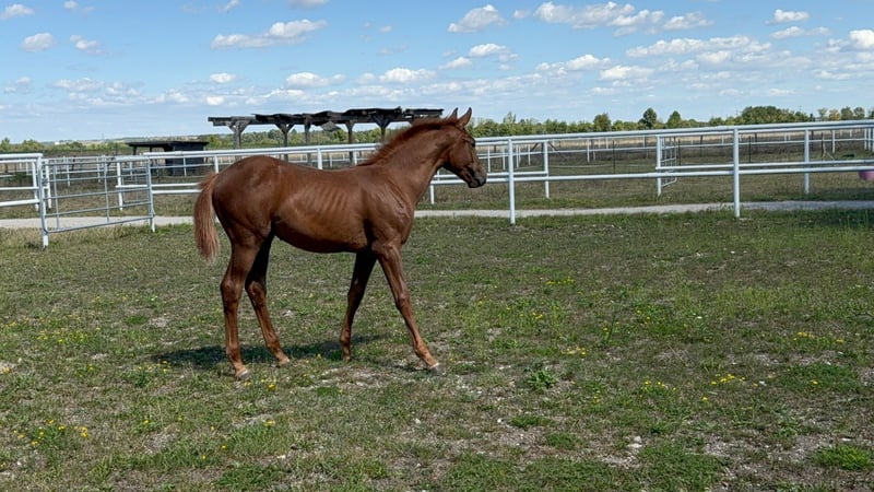 Typical filly by Poker de Mariposa x Gemini CL – Expressive young prospect with top pedigree For sale is an extremely charming and modern filly with excellent jumping lineage. Sire Poker de Mariposa, a son of the world-famous Nabab de Rêve from the motherline of Flora de Mariposa, represents exceptional talent in jumping, rideability, and a modern sport horse type. The dam's sire Gemini CL, a clone of Gem Twist, brings legendary performance genetics to this pairing. The foal presents itself as very spirited, attentive, and full of energy, always curious and people-oriented. She has an expressive conformation, with correct foundations and a good topline. Her movement is loose, lively, and powerful – with a lot of elasticity and natural balance.