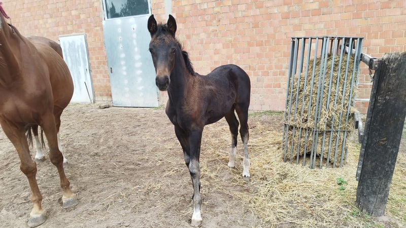 Zum Verkauf steht dieser Hengstabsetzer von For Dance aus einer Fürst Fugger x Dormello Mutter geboren in 07/25. Er besticht durch sein sehr korrektes Fundament und seinen Typ und Ausdruck. "Fritzi" bringt drei sehr gute Grundgangarten mit, wobei besonders der Trab hervorgehoben werden muss. Des Weiteren besticht er durch seinen hervorragenden Charakter. Selbstverständlich beherrscht Fritz das Fohlen ABC und wurde regelmäßig dem Hufschmied vorgestellt sowie entwurmt. Bei Interesse können gerne Videos zugeschickt werden.