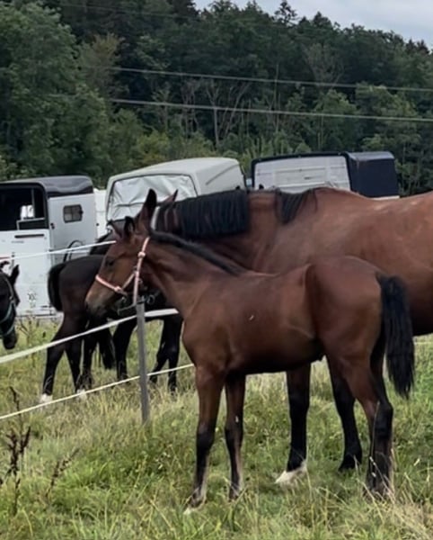 Pretty foal by For Romance and Quatermann. Papers are not yet available, they are applied for. Current pictures and videos from December 27, 2024. Very well-behaved and easy-going. He was separated from the herd for the first time for the video. It went really well.