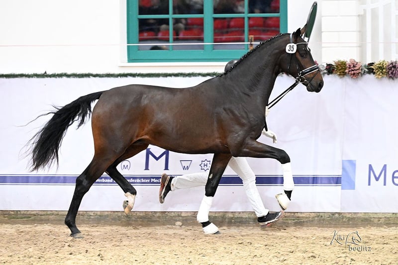 Vendo un magnifico stallone Oldenburg, nato nel 2023. Il giovane cavallo si distingue per il suo mantello elegante, di colore marrone scuro, e per un’altezza al garrese impressionante di 171 cm. È particolarmente adatto al dressage e dimostra grande talento, oltre a una promettente base di addestramento. Un partner affidabile per cavalieri ambiziosi che apprezzano qualità e carattere. Il stallone è stato già valutato come puledro con un punteggio di 88,33, classificandolo come puledro d’élite. Nel dicembre 2025 ha ottenuto la licenza di stallone in Redefin. Per ulteriori informazioni e per una visita, sono a disposizione.