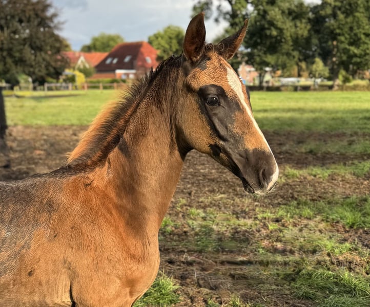 Zum Verkauf steht ein vielversprechender Oldenburger Hengstanwärter, geboren am 21.06.2025. Er stammt ab von Delight PS ( Dynamic Dream x Franklin) x De Niro. Dieser Hengst zeichnet sich durch seine hervorragenden und elastischen Bewegungen und sein ausgeglichenes Temperament aus. Er wächst bei uns im Herdenverband mit sehr viel Auslauf und weiteren Stuten mit Fohlen auf, beherrscht das Fohlen Abc, wird regelmäßig beim Hufschmied vorgestellt und entwurmt. Die Mutter Delphine vom Schafhof war selbst Dressurpferde A platziert und ist dann in die Zucht gegangen. Die Mutter der Stute Avourneen war bis M** platziert. Auf der Mutterseite glänzen Grand Prix-Champion De Niro und Argentan-Sohn Archipel. Aus dem Mutterstamm: Die Vererber Abdullah v. Donauwind, Glock’s Tango v. Jazz/Grand Prix-siegreich mit Hans Peter Minderhoud, NED, Jheronimus v. Dream Boy/Kirsten Brouwer, NED, sowie die Grand Prix-erfolgreichen Lago v. Dream Boy/Liesbeth Geven, NED, und Bonzanjo v. Jazz/Diederik van Silfhout, NED Bei Interesse oder für weitere Informationen stehe ich Ihnen gerne zur Verfügung. Besuchen Sie uns und überzeugen Sie sich selbst von diesem außergewöhnlichen Fohlen.