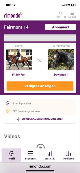 Feliciano x Fit for Fun x Davignon ! Unserer wunderschöner Hengst von Feliciano aus unserer Manitoba MBH , sucht zum Herbst einen neuen Wirkungskreis . Er ist korrekt im Fundament, hat schöne Linien und ist auch sonst ein tolles sehr menschenbezogenes Fohlen, eben regelmäßig in der Hand. Er verfügt über 3 schöne GGA , top Schritt!! Er kennt das Fohlen ABC , Schmied, Halfter, putzen und usw . kennt er alles . selbstverständlich ist er regelmäßig entwurmt und mit Mineralien versorgt. Seine Mutter war selber im Sport, der Vollbruder Fairmont 14 erfolgreich bis GP unter anderem unter I. Werth Für weitere Infos gerne einfach unter 017662637296 anrufen.
