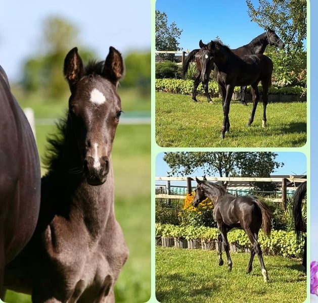 Jeune étalon Oldenburger noir, élégant et longiligne, par SPRINGNIGHT x SIR DONNERHALL. Son frère a récemment remporté 7 GP, GPS et Kür, également à l'international. D’autres frères et sœurs ont décroché des qualifications pour le Championnat fédéral chez les jeunes de 4 et 5 ans, avec des notes allant jusqu’à 8,7 ! Il possède un trot spectaculaire, une belle allure de pas avec genoux, et un galop supérieur, monté, avec beaucoup d’amplitude et une impulsion puissante, bien ancrée dans le sol ! Ce cheval ne sera vendu qu’à des cavaliers engagés, ayant des perspectives de Grand Prix. Le prix de vente reflète son exceptionnelle qualité.