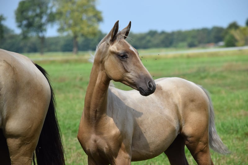 This noble colt in the coveted palomino color impressively combines the proven rideability inheritance of Sir Donnerhall with the unique charisma and endurance of the Akhal-Teke. As the son of one of the most successful dressage sires of our time, he brings excellent prerequisites for sport – type, movement quality, and character. The Akhal-Teke mother adds valuable traits to this pairing: exceptional endurance, toughness, sociability, and a very special expression. Known for their dry, distinctive appearance and springy movement, Akhal-Tekes complement modern warmblood lines in an interesting way – particularly regarding light-footedness, soundness of the foundation, and longevity. The result is a modern, athletic foal with a striking appearance, a lot of nobility, and a clear perspective for high-level equestrian sport.