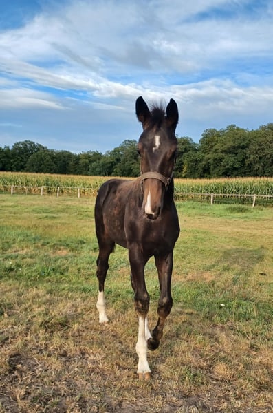 Dieses Fohlen zeigt bereits jetzt überragende Grundgangarten mit viel Schwung und Takt. Diese Fohlen vereint die besten Blutlinien für den Dressursport und besticht durch seinen korrekten Körperbau. Vater Escaneno ist ein gefeierter Prämienhengst, der für seine überragenden Bewegungsqualitäten und Rittigkeit bekannt ist. Er gibt diese Qualitäten an seine Nachkommen weiter. Er hatte sich auch für die Weltmeisterschaft der jungen Dressurpferde in Verden qualifiziert. Die Mutter Beauty stammt aus einer Züchtung die mehrere Auktionsfohlen hervorgebracht hat. Die Großmutter Baroness brachte nicht nur Beauty hervor sondern auch Quadiro. Er ist bereits S*** erfolgreich im Dressursport unterwegs. Video auf Anfrage