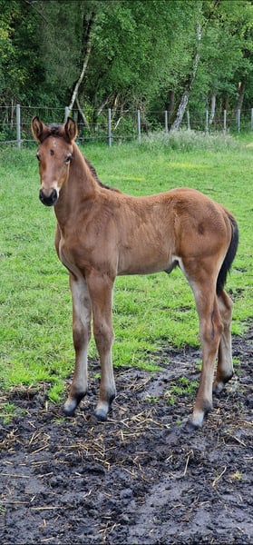 Origine : Highway TN x Diamant de Semilly x Quidam de Revel x Beach Boy Voici un joli foal de prestige, dont l'excellente lignée laisse espérer un avenir prometteur en tant que cheval de sport. Père : Highway M TN est vainqueur du Rolex Grand Prix et a remporté le concours de saut d'obstacles de Leipzig lors de la Coupe du Monde avec Willem Greve. Actuellement, il figure parmi les meilleurs chevaux de saut au monde. Mère : une fille directe de Diamant de Semilly, qui a été classé numéro un du classement WBFSH pendant de nombreuses années. Diamant de Semilly s’est imposé comme l’un des reproducteurs les plus influents du saut d’obstacles international. Avec ses innombrables descendants, il impressionne par sa capacité exceptionnelle à transmettre ses qualités. À ce jour, il compte 169 fils agréés. MMF Quidam de Revel est déjà une superstar de son vivant, tant par ses propres succès en parcours de saut que par ses qualités de reproducteur pour l’élevage de chevaux de haut niveau. En quatrième génération, on retrouve la légende Beach Boy.
