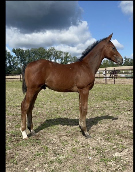 Ich verkaufe mein prämiertes Hengstfohlen. Geboren ist er am 08.05.2025. Das Fohlen ABC (Hufe auskratzen, anbinden, überall putzen lassen, Halfter auf- und absetzen lassen und Halfterführigkeit) ist für ihn ein Klacks! Er ist verspielt und sehr verschmust und äußerst menschenbezogen. Er ist sehr aufmerksam und neugierig, zudem unerschrocken und aufgeschlossen. Angaben zum Mutterstamm: In seinem Mutterstamm gliedern sich die absoluten Stempelhengste, wie an einer Perlenschnur gereiht aneinander: Dourkhan Hero Z (dieses Jahr erst gewann er unter Christian Ahlmann den Großen Preis vom Hamburger Derby), Darco, Corde la Bryère, Almé Z, Gotthard! Alle ausnahmslos Top Vererber von Leistungspferden die in Sport und in der Zucht für Furore gesorgt haben und auch noch werden! Er ist das erste Fohlen der Stute, die Stute ist 2021 geboren. Diese Blutkombination steht für enorme Leistungsbereitschaft, Rittigkeit und bestes Springvermögen – eine exzellente Grundlage für den Sport und die Zucht.