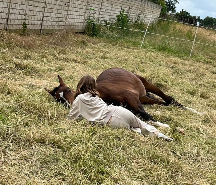 Zum verkauf steht ein wunderschöner fast 3 Jahre alter Oldenburger Hengst, mit einem derzeitigen stockmaß von 1,63m. Artax zeichnet sich durch seine charmante, liebevolle und ruhige Art aus. Er ist ein absolutes Familienpferd. Im Umgang zeigt er sich ausgesprochen brav und lernbereit. Auch von Kindern lässt er sich problemlos führen und putzen. Er ist genau wie seine Mutter sehr nervenstark und menschenbezogen. Seine Mutter wird von Kindern im Springsport und im Gelände geritten. Auf turnieren sammelt sie eine Schleife nach der anderen. Artax ist ein Versprechen in die Zukunft, für goß und klein, ein ruhiges Amateurpferd für die ganze Familie. Mitte Oktober ist die Kastration geplant. Er ist schmeid- und verlademfrom, kennt Sattel und Trense, sowie Boxen und Offenstall Haltung. Sollten wir Ihr Interesse geweckt haben, stehen wir Ihnen gerne für weitere Fragen zur Verfügung. 0152-01978850