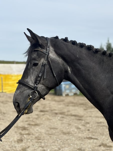 For sale: 4-year-old stallion, will be a gray, equipped with a lot of talent, knows free jumping and is lunged. Clear-headed and well-behaved. Very good pedigree from Cornet's Darco x Balou du Rouet x Quality. His mother Quabalouna has already competed at 1.40m. Height approximately 1.68m (still growing). Good for the farrier. No veterinary examination available, but can be done if desired.