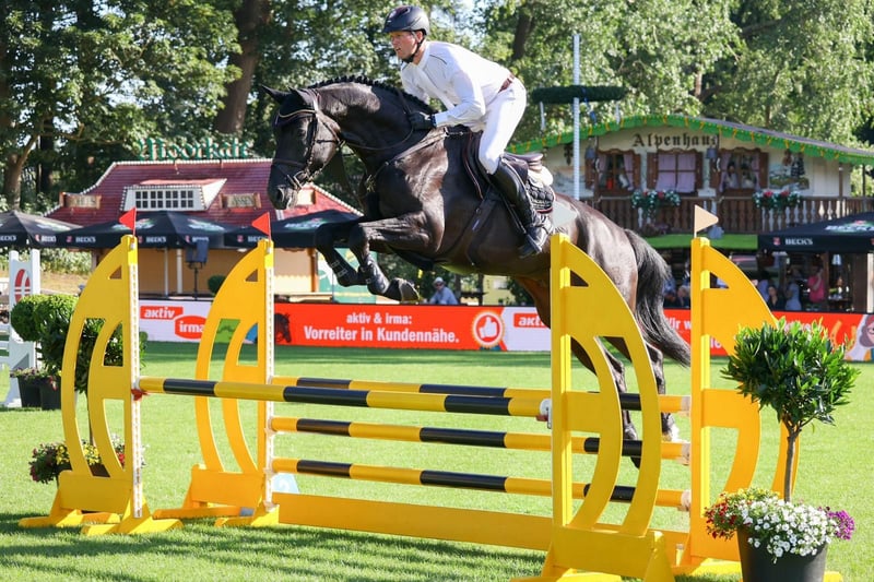 Dotato di una grande panoramica, risorse infinite e pieno di potenza, Comanchero di Comme Prévu, che è stato concesso in licenza agli Oldenburg Stallion Days 2021, si presenta. È già ben sviluppato e si presenta con molta pressione degli stalloni. Sotto la sella mostra un grande galoppo, una guidabilità esemplare e molta abilità nel salto. Discesa Suo padre Comme Prévu ha successo nel salto ostacoli internazionale e padre di diversi figli con licenza. Sua madre, St.Pr e cavalla d'élite Lady Heida II di Landor S, è la nostra cavalla di maggior successo. Ha ricevuto il voto di salto 10.0 nel test di prestazione della cavalla ed è una sorella completa della cavalla vincitrice nazionale St.Pr. e della cavalla d'élite Lady Heida I. Lady Heida II ha portato con Catoki i cavalli da salto di successo internazionale Cador (sire della nostra stazione di stalloni), Cadora (con Gerd e Hendrik Sosath negli ultimi anni in quasi tutti i salti fino a S*** vittoriosi o piazzati, e.B. ai CSI Paderborn, Nörten-Hardenberg e Oldenburg, 2020 con Janne Sosath-Hahn German Amateur Champion) e Lady Cadora (cavalla vincitrice 2014 dell'associazione di allevamento di cavalli da salto Oldenburg-International, 2017 Vice Campione Nazionale e ora A livello internazionale S**-piazzato). Inoltre, Lady Heida II è la madre degli stalloni autorizzati Diamant de Landor di Diamant de Semilly e Calandor di Casalido. Da parte di sua madre, lo stallone moderno risale al comprovato sangue Furioso II attraverso i migliori fratelli Landor S (padre di numerosi cavalli da salto ostacoli di successo nazionale e internazionale) e Contender (Holstein jumping horse sires). Da questo ceppo di cavalla dell'Heida provengono molti stalloni autorizzati come Coulthard, Diamant de Landor, Diamant de Plaisir, Calandor, Incello, Lagoheidor G, Lambrusco Ask, Landor S, Landwerder o Omnistar.