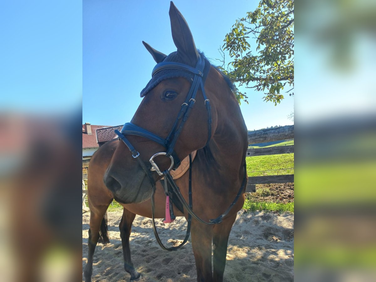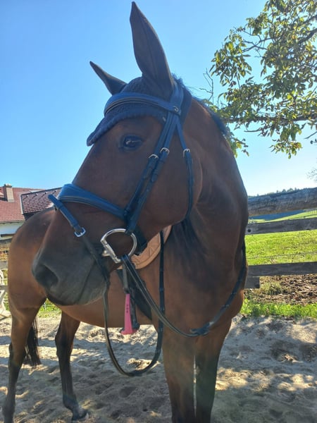 For sale is our 10-year-old mare. She impresses with three expressive basic gaits and excellent jumping ability. In everyday handling, she is very straightforward. She is familiar with herd life, stables, dogs, children, agricultural machinery, and mixed herds! She is a true professional in ground work, enjoys lunging, long walks, and cuddling. Unfortunately, she is only conditionally rideable. Feel free to contact me via WhatsApp for more information.