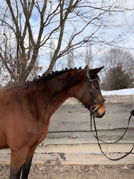 Zum Verkauf steht unsere 10 jährige Stute. Sie überzeugt durch 3 schwungvolle Grundgangarten und ein ausgezeichnetes Springvermögen. Im alltäglichen Handeling ist sie sehr unkompliziert. Sie kennt Offenstall, Box, Hunde, Kinder, landwirtschaftliche Maschinen und gemischte Herden! Sie ist ein echter Profi in Bodenarbeit, liebt longieren, Sparziergänge und Kuscheleinheiten. Leider ist sie nur bedingt reitbar. Nähere Infos gern über Whatsapp.