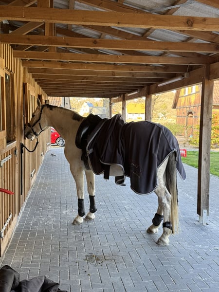 Zum Verkauf steht eine 12 jährige ca. 165 cm große tolle Stute! Sie wurde 4 jährig angeritten und ging dann in die Zucht! Im letzten Jahr wieder angeschoben und sowas von brav und toll! Sie ist vom Ausbildungsstand eher auf dem Niveau eines Jungpferdes aber ich sehe die Stute mit Familienaschluss ( vielleicht Mutter/Tochter Gespann) am besten! Geht alleine ins Gelände und ist absolut unerschrocken! Ihre Nachkommen gehen durch die Bank weg im Sport erfolgreich bis zur schweren Klasse! Ihre Mutter ging ebenfalls erfolgreich bis zur schweren Klasse im Turniersport! Tragend für Mai 26 von Casino Toulon! Kann danach wieder geritten werden! Ich wünsche mir ein ein tolles Zuhause mit Familienanschluss für die Stute!