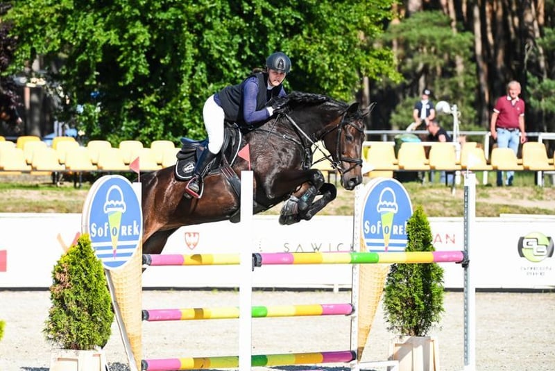 Verkaufen Sie eine hübsche Springstute mit großartiger Springlinie. Korea ist ein äußerst angenehmer und sensibler Reitpferd, sehr gut ausgebildet im Dressur, macht Übergänge, Zügelwechsel und fliegende Wechsel. Die Stute ist dynamisch, aufmerksam auf die Hilfen und stets motiviert, vorwärts zu gehen. Sie eignet sich auch für Kinder- und Amateurreiter, ist schnell im Rückschritt, präzise und springt zuverlässig. Ideal für die Lizenzprüfung und den Einstieg in Turniere bis 120/130 cm. Täglich auf der Weide, problemlos im Transport und beim Hufschmied, liebt Pflege- und Behandlungen sehr. Sehr sicher im Umgang, springt nicht unkontrolliert, trägt sich gut im Gelände und ist nervenstark. Die Stute startet regelmäßig in Springprüfungen bis 130 cm und hat internationale Turniererfahrung. Aktuelle Röntgenbilder sind vorhanden. Sie ist gesund, seit 5 Jahren bei mir, nie verletzt. Das Springtraining begann erst mit 7 Jahren, die ersten Turniere folgten mit 8 Jahren. Aus einer Zucht gekauft, hat sie drei Fohlen geboren. Verkauf aus persönlichen Gründen! Probespringen gegen Gebühr von 150 zł. Michałowice: https://youtu.be/Ax7Gt1Q93Z4?si=VvEfwdA-uv2822zh Bitte telefonisch kontaktieren: 501 145 369