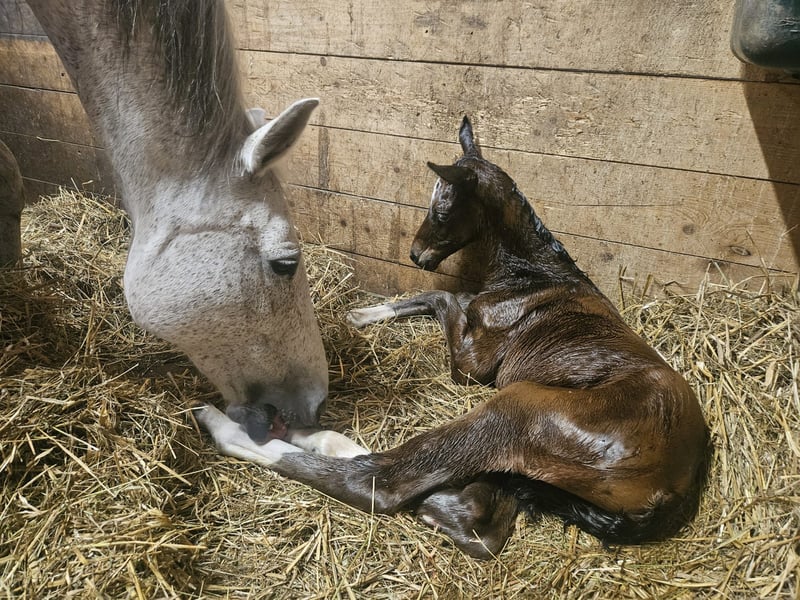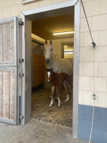 Baloudien is a wonderful broodmare that passes on the best qualities to her foals. She is very well-behaved and easy to handle. Within the herd, she asserts herself confidently and often takes on the leadership role. Her foals have achieved success in show jumping (her son is licensed).