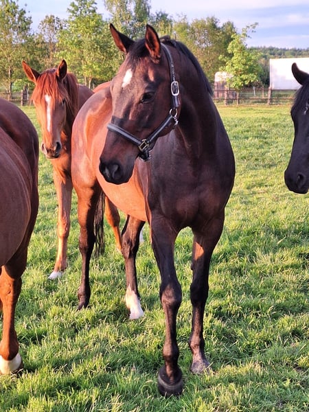 Elegancka, ciemno-brązowa klacz Conthargos do oddania z powodu redukcji stada. Miała u nas źrebaka i w tym roku jeszcze nie została pokryta. Rodzeństwo klaczy Doyllon, Pass Away i Comic c, wszystkie o wzroście 1,45 m, odnoszą sukcesy.