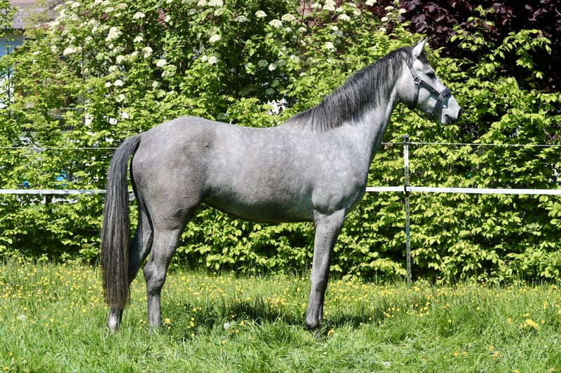 For sale: Oldenburg show jumping mare by ZINEDINE out of CASSONE, born March 2022, currently approximately 16.1 hh, grey. The mare has not yet been ridden under saddle but is already familiar with lunging with bridle and lunge line. She is well-behaved in daily handling. Viewings available by appointment. Price negotiable.