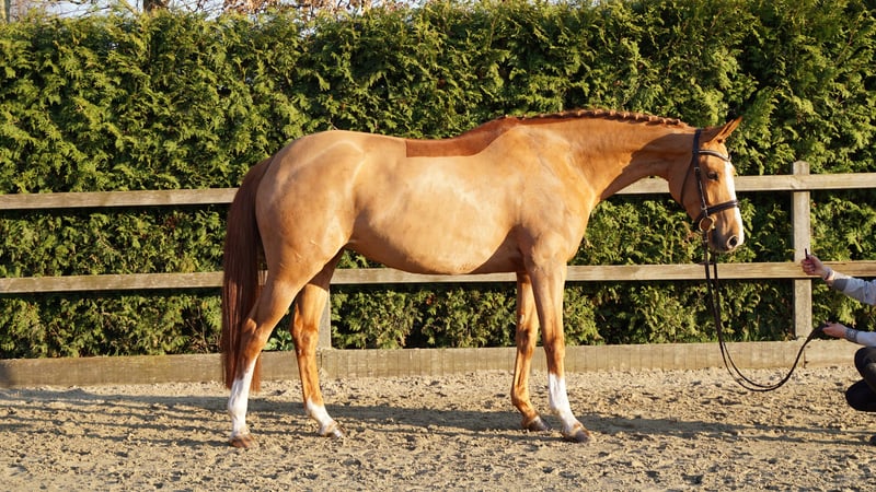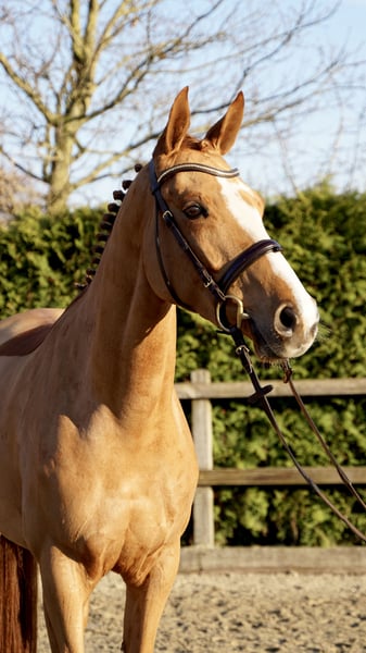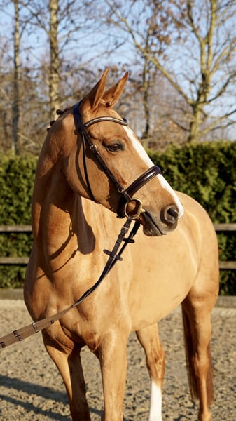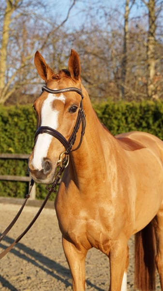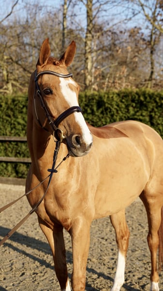 For sale is a stylish 6-year-old chestnut mare with already achieved placings in show jumping class A competitions. She consistently demonstrates motivation and willingness to perform. At the jump, she impresses with her caution, good overview, and solid technique. Under saddle, she is pleasant to ride, responds delicately to the aids, and has a positive attitude towards work. In daily handling, she is gentle and uncomplicated, making her suitable for ambitious amateurs as well as for further sporting development. A fantastic young prospect with great potential! A thorough vet check is available. Please contact 0172 3241632 for more information and videos.