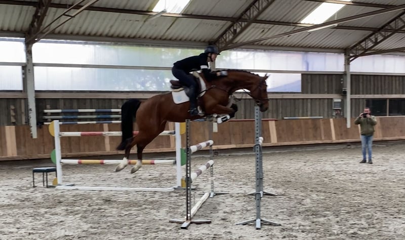 Sporty young mare with top show jumping lineage Quasibella (born 2019) is a strikingly beautiful and modern mare, bringing quality from both sides of her pedigree. Sire Quasimodo van de Molendreef and dam's sire Placido represent excellent show jumping lineage with a lot of willingness to perform and ability. She impresses with her athletic appearance, plenty of energy, and eagerness to work – always pleasant to handle, and is good for shoeing and loading. Quasibella presents herself as a motivated and performance-ready partner. Already placed multiple times in show jumping classes A and L, she playfully demonstrates her great ability at home and completes full courses at M level. An ideal young mare for riders looking for an ambitious show jumping horse with potential for higher tasks.