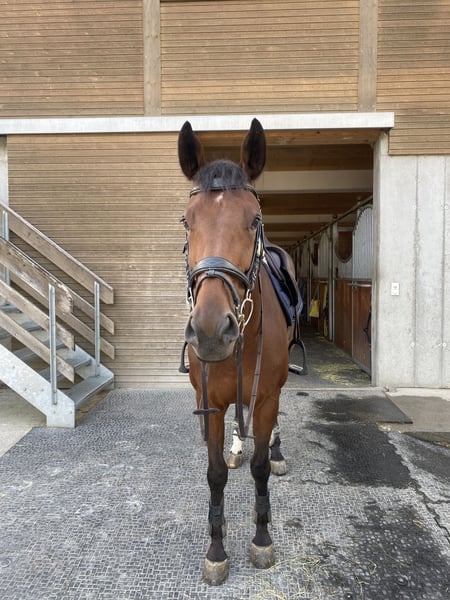 Meine 9-jährige Stute sucht ein liebevolles neues Zuhause, in dem sie vielseitig gearbeitet, aber auch einfach gerngehabt und geschätzt wird. Sie ist sehr brav im Gelände, motiviert in der Dressur- und Longenarbeit. Ursprünglich wurde sie als Springpferd ausgebildet und war erfolgreich bis 115 cm auf Turnieren. Allerdings zeigt sie sich im Parcours mit viel Go, wurde stark und rannte nach den Sprüngen los. Deshalb sollte das Springen beim neuen Besitzer/in nicht im Vordergrund stehen, sondern eher gelegentlich zur Abwechslung dienen. Im täglichen Umgang ist sie sehr brav, freundlich und unkompliziert – sowohl im Stall als auch beim Hufschmied. Ich wünsche mir für sie einen Platz bei jemandem, der Freude an einem gut ausgebildeten, motivierten und verlässlichen Pferd hat, das vielseitig eingesetzt werden kann.