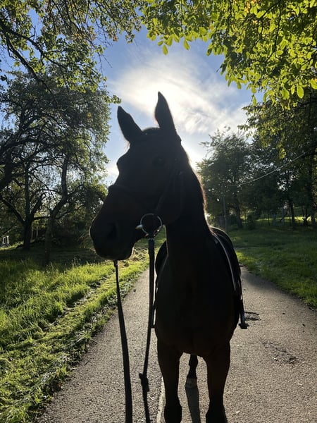 Verkaufe Oldenburger Stute, 9 jährig Sie ist unfassbar lieb im Umgang auch mit Kindern und möchte immer gefallen. Sie ist in der Dressurarbeit sehr schön zu reiten und ist immer Arbeitswillig. Auch kleine Sprünge bereiten ihr Freude. Wobei der Fokus von Ihr eher auf das Gelände und den Spaß am täglichen liegt. Im Moment wird Sie von einem Mädchen geritten. Im Gelände ist Sie super lieb (allein oder in der Gruppe). Lange Ausritte mit Abwechslung liebt sie. Bodenarbeit und Schrecktraining machen ihr viel Spaß, Blue ist ein Pferd was man jeden Tag gerne aus der Box holt. Wir suchen für Sie ein tolles Zuhause als Freizeitpferd das ihrem Reiter täglich Freude bereitet. Aktuell kennt Sie Box und Paddock. Platz vor Preis Bei Interesse oder für weitere Informationen stehe ich Ihnen gerne zur Verfügung. 017662830914