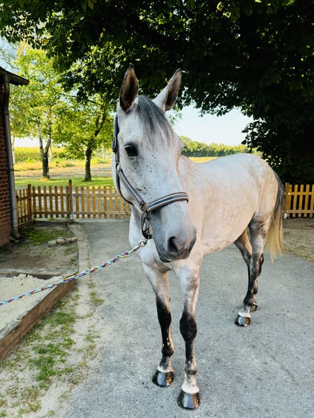 Verkaufe hier meinen 10 Jahre alten Wallach von Casscavelle NT x Canturo. Er ist 1,74 m groß und wurde von mir selbst angeritten und ausgebildet. Er hat M* gewonnen und ist M** platziert. Er ist gut zu reiten, stets leistungsbereit und hat einen sehr ruhigen und braven Charakter. Im täglichen Umgang zeigt er sich unkompliziert und angenehm. Auch die regelmäßigen Ausritte sind kein Problem. Einfach ein tolles Amateurpferd!
