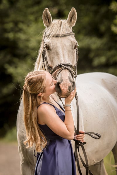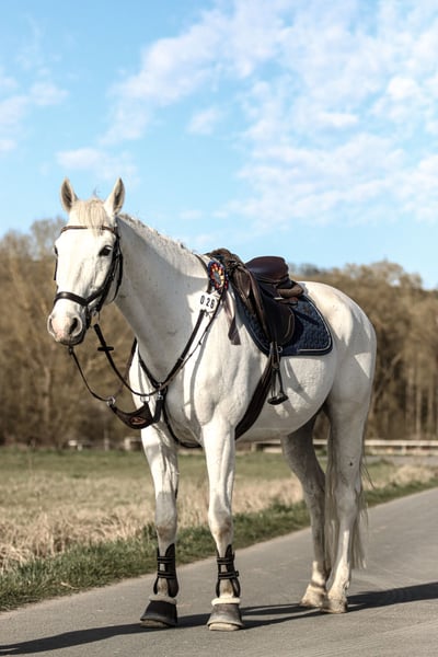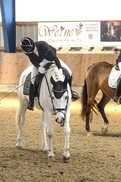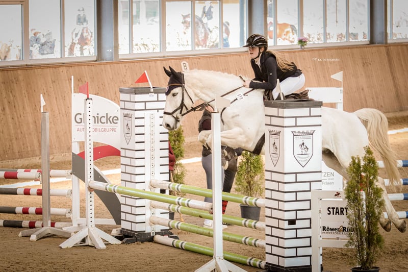 Z ciężkim sercem muszę pożegnać się z moim ukochanym Quinnem, ponieważ nie pasujemy już do siebie, a ze względu na szkołę nie mam na niego wystarczająco czasu. Quinn urodził się w 2010 roku, a jego wzrost to około 164 cm. Z poprzednim właścicielem startował do poziomu M w skokach. Ze mną zaliczył pierwszą klasę A w ujeździe oraz kilka mniejszych konkursów skokowych. Jest spokojny i posłuszny w obsłudze. Na zawodach to prawdziwy skarb, stara się zrobić wszystko, aby zadowolić jeźdźca, i wybacza błędy ridera. Nie jest to jednak koń dla początkujących – w parkurze potrzebuje jeźdźca z delikatnym wyczuciem. W tym roku jeździłem z nim na Mistrzostwa Hesji w młodzieżowym czwórboju, gdzie spał w obozie i zachowywał się świetnie. Szukam dla niego doświadczonego, pewnego siebie nastolatka lub młodego dorosłego, który chętnie będzie się z nim rozwijał i uczył nowych rzeczy. Oddaję go tylko w najlepsze ręce. Akcja z 2023 roku jest dostępna. Aby zapobiec turystyce jeździeckiej, za próbne jazdy pobieramy 20 €, które zostaną odliczone od ceny w przypadku zakupu. Nie jest to sytuacja awaryjna.