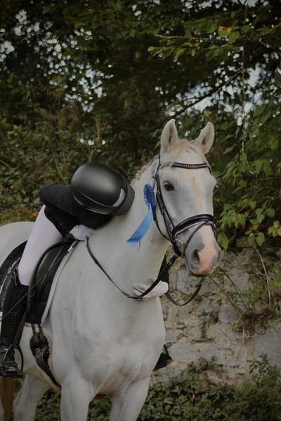 Schweren Herzens muss ich mich von meinem lieben Quinn verabschieden, da wir einfach nicht mehr zusammen passen und ich aufgrund von der Schule keine Zeit mehr habe. Quinn ist 2010 geboren und sein Stockmass ist ca.164cm. Mit der Vorbesitzerin ist er bis M Springen gegangen. Mit mir konnte er die erste A Dressur und einige kleine Springen gehen. Er ist rangniedrig und brav im Umgang. Am Turnier ist er ein wahrer Schatz und probiert es einem Recht zu machen und verzeiht auch Reiter-Fehler. Trotzdem ist er kein Anfänger Pferd, er braucht im Parcour einen Reiter mit feiner Hilfengebung. Er ist mit mir dieses Jahr die Hessenmeisterschaft im Nachwuchs Vierkampf gegangen und hat dort auch in einem Stall Zelt geschlafen und war dort auch super lieb. Ich wünsche mir für ihn einen erfahrenen, sattelfesten Teenager/ jungen Erwachsenen der Lust hat mit ihm zusammen zu wachsen und noch viel Neues zu lernen. Er wird nur in allerbeste Hände abgegeben. Aku aus 2023 liegt vor. Um Reittourismus vorzubeugen nehmen wir für das Probereiten 20 €, die bei einem Kauf natürlich verrechnet werden. Kein Notverkauf.