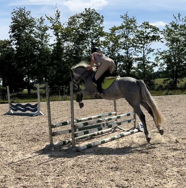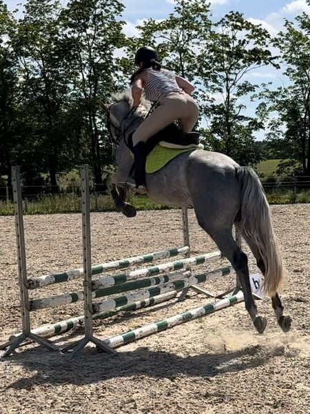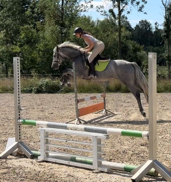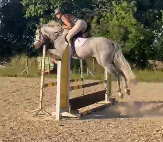 Sehr lieb im Umgang, brav. Macht fliegen wechsel in Galop. Leicht im Maul. Super Charakter. Das Pferd ist talentiert. Mehr Info per Whats App 🤗