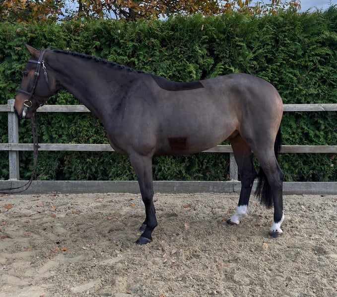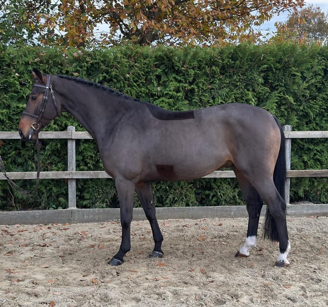 Te koop: Oldenburg springpaard – ruin, geboren in 2021 Te koop staat een veelbelovend Oldenburg springruin. Hij (Harald) is geboren in 2021 en heeft zijn opfok tot voorjaar dit jaar op onze fokkerij genoten. Sindsdien is hij voorzichtig aangezad en voor het parcours opgeleid. Hier heeft hij al enkele successen behaald. Hij toont veel springvermogen en wil altijd naar de andere kant. Hij overtuigt door zijn positieve uitstraling en zijn aangename karakter. Met een stokmaat van 1,67 m biedt hij de ideale maat voor ambitieuze ruiters. Dankzij zijn vriendelijke aard is hij zowel geschikt voor sport als voor recreatief gebruik. Een geldige keuring (TÜV) is aanwezig. Bij interesse en voor meer informatie sta ik graag tot uw beschikking. Bezichtigingen en proefritten zijn na afspraak mogelijk.