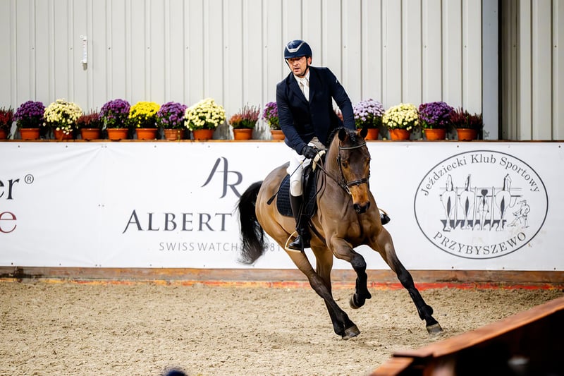 Zilan S (Zinedream - Landprinz I - Azarro), *2020, Oldenburg International (OS), ok. 166 cm Zilan S to niezwykle urodziwy, ultranowoczesny i atletyczny 5-letni wałach, który urzeka wspaniałym charakterem oraz bardzo dobrą jezdnością i nastawieniem do pracy. Całość dopełniają trzy bardzo dobre chody podstawowe, przy czym szczególną uwagę zwraca galop. Obecnie Zilan S startuje w konkursach do klasy P (1,10 m). Ojciec, Zinedream to międzynarodowy zwycięzca 5* Grand Prix, który błyszczy w międzynarodowym sporcie pod wodzą drużynowego wicemistrza Europy Davida Willa. W 2024 roku para świetnie rozpoczęła sezon od zwycięstwa na najwyższym poziomie. Na CSIO5* w Abu Dhabi/UAE Zinedream i David zwyciężyli w Dużej Rundzie 1,60 m. Galopowali do mety około 1,5 sekundy szybciej niż numer jeden na świecie Henrik von Eckermann i błyskawiczny King Edward. Największe sukcesy, takie jak zwycięstwo w konkursie skoków Global Champions League (1,60 m) w Riesenbeck, zwycięstwo na etapie Pucharu Świata w Rijadzie (1,60 m), srebro w Pucharze Narodów w Sharjah/UAE z niemiecką drużyną, zwycięstwo w Grand Prix w Ising, piąte miejsce w 4* Grand Prix (1,55 m) w Münster, szóste miejsce w Grand Prix (1,55 m) w Al Ain (ZEA) oraz cała seria międzynarodowych zwycięstw i miejsc sprawiają, że Zinedream jest światowej klasy sportowcem. Matka, klacz premiowana Luna Llena, jest córką holsztyńskiego ogiera Landprinz I, zwycięzcy próby dzielności ogierów w München-Riem. Babka Antonia odnosiła sukcesy w skokach przez przeszkody do 1,30 m, a jej półsiostra Laura do 1,40 m. Oldenburski ogier Azarro zajął ósme miejsce na Mistrzostwach Niemiec w 1995 roku pod Holgerem Wulschnerem. Ponadto wygrał wiele konkursów skoków przez przeszkody niemieckiej klasy S (1,40 m) i odniósł sukces na CHIO Aachen w 1996 roku. Potomstwo klaczy Luna Llena z sukcesami startuje w skokach przez przeszkody. Cumbela (Chevalier S) (po Cancoon) osiągał międzynarodowe sukcesy do poziomu 1,60 m pod Maureen Bonder (NED), a Carmen S (po Cancoon) startowała z powodzeniem do poziomu 1,35 m. Carmen S jest matką klaczy Stakkato Lazar, która pod Tomaszem Miśkiewiczem (POL) osiągała międzynarodowe sukcesy do poziomu 1,60 m i została Mistrzynią Polski w skokach przez przeszkody w 2023 roku. Jako 5-latka Stakkato Lazar zajęła drugie miejsce w Mistrzostwach Polski Młodych Koni, a rok później zwyciężyła w kategorii sześciolatków. Horsetelex: https://www.horsetelex.com/horses/pedigree/2232303/zilan-s RTG zrobione w wieku 2,5 lat do wglądu - oczywiście jest możliwość wykonania nowych badań. Możliwość organizacji transportu. Więcej filmów wyślę przez Whatsapp.